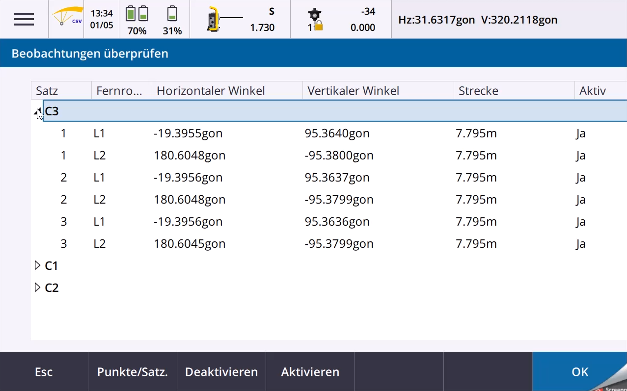 • Detaillierte Anzeige der Messungen und Genauigkeiten der Sätze